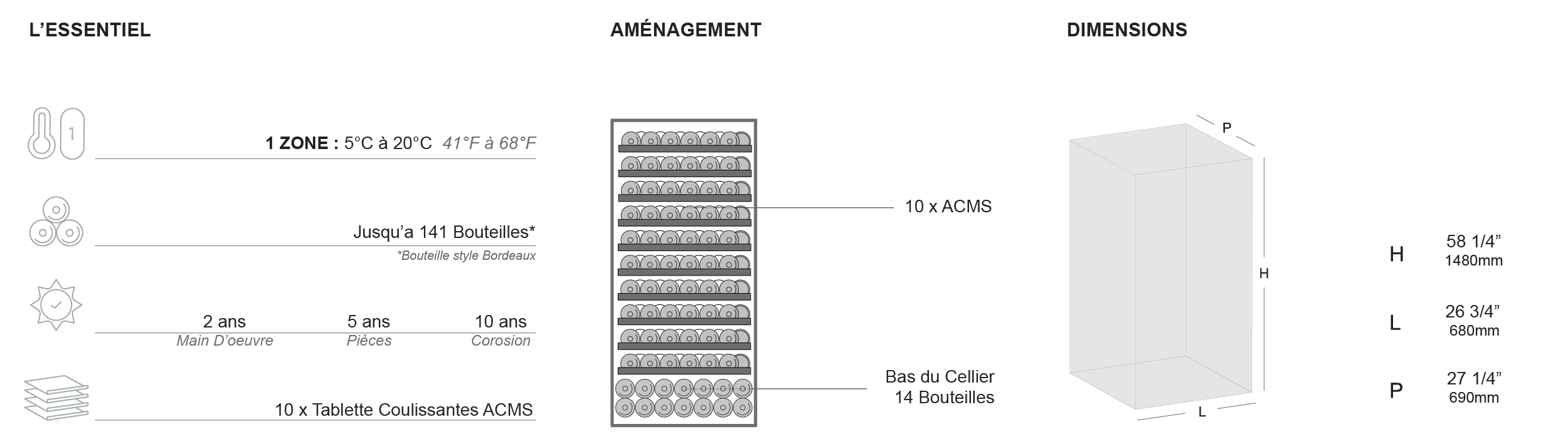 • Capacité : 141 bouteilles